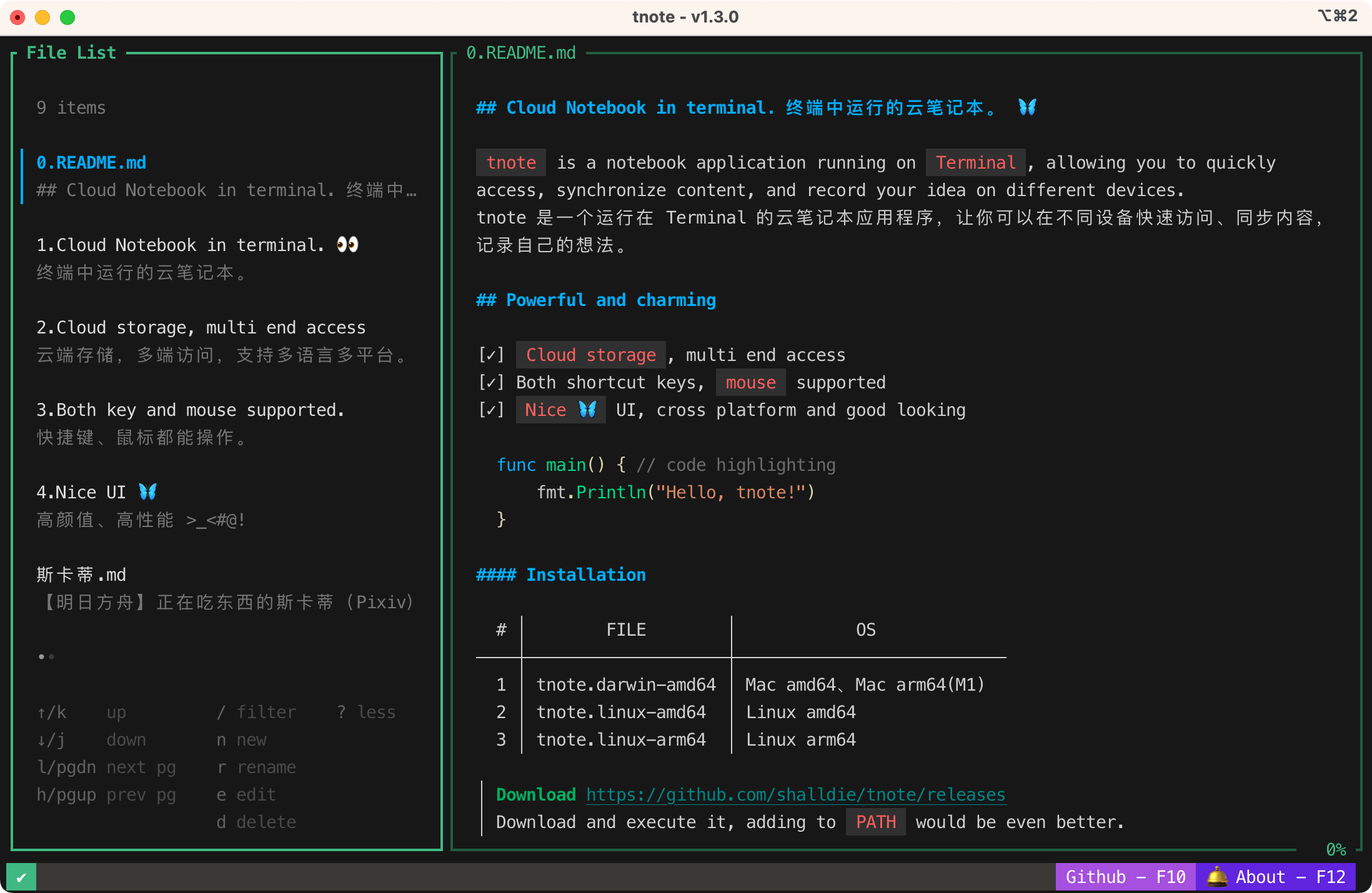 基于 Bubble Tea,我写了个运行在 Terminal 的云笔记本应用程序,可以在不同设备快速访问、同步内容,记录自己的想法。