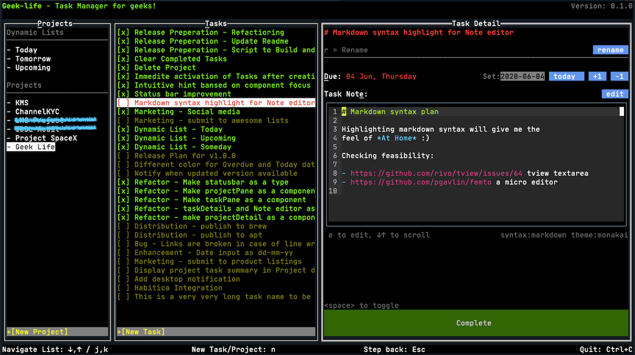 写过一个基于 tview 的记事本程序:https://github.com/shalldie/tnote/tree/ver.tview
